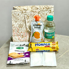 This hamper by Rajasvee includes refreshments and quick bites of snacks and drinks.